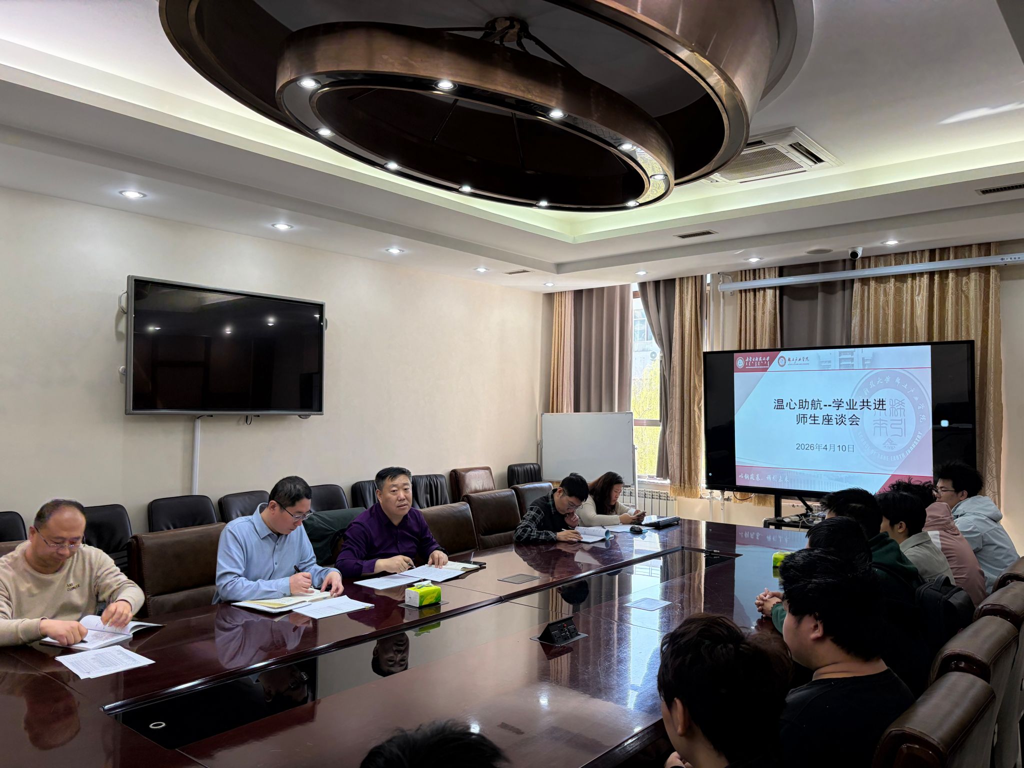 教学副院长冯佃臣、教学办、学工办、相关班主任及学业预警学生参加座谈会。